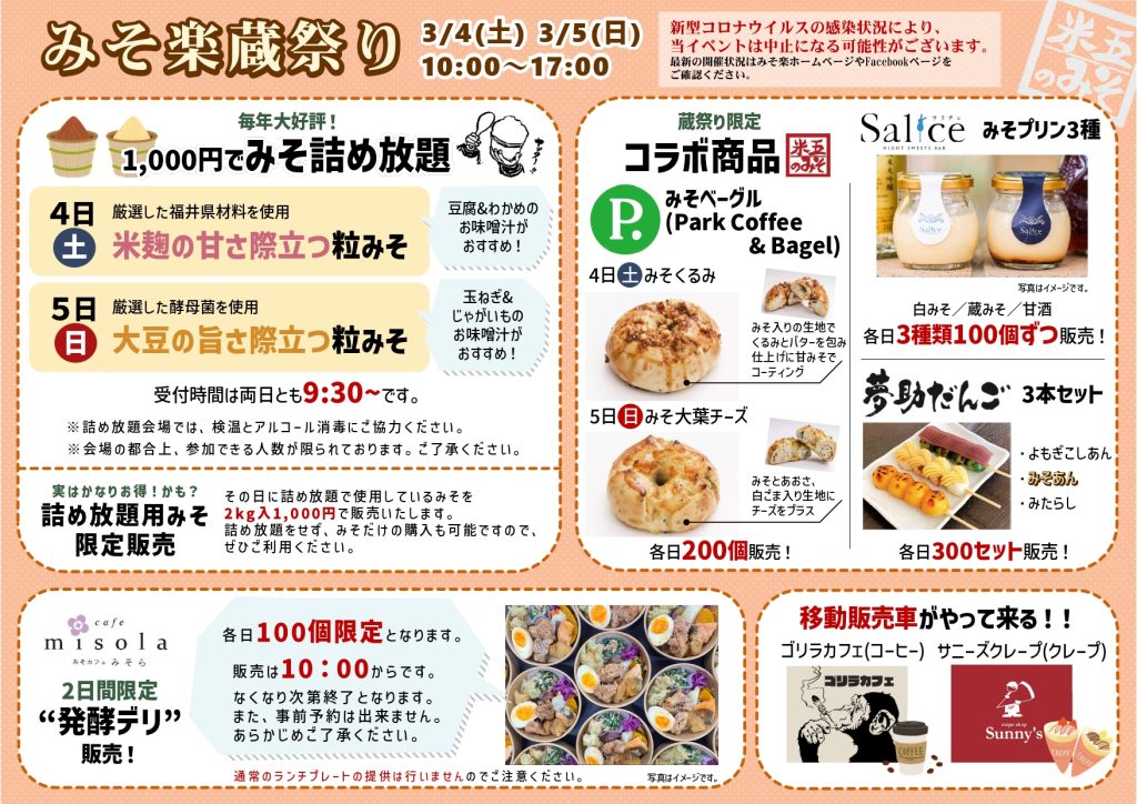 3月4日(土)、3月5日(日)にみそ楽蔵祭りを開催することが決定しました(^^)